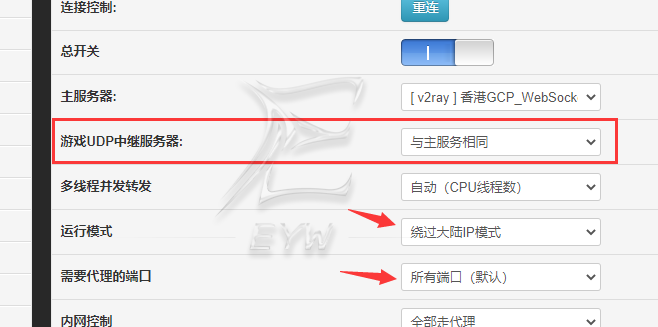 游戏UDP中继服务器设置为与主服务相同